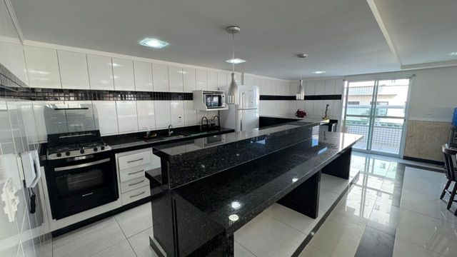 São 2 dormitórios, 1 suíte, sala para 2 ambientes, cozinha, lavanderia, sacada gourmet com vista lateral mar, 1 vaga de garagem.